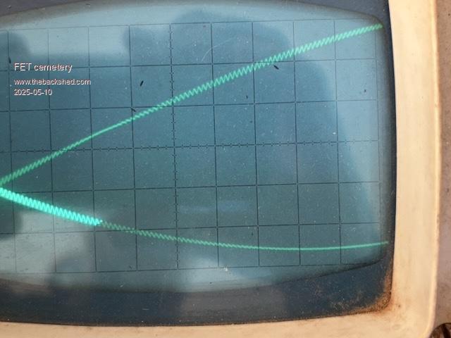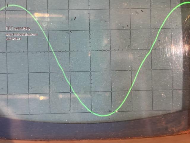 The original scope pic from the bench test, right way up. You have to squint to see it but there's a tiny kink in the waveform after the zero crossing.