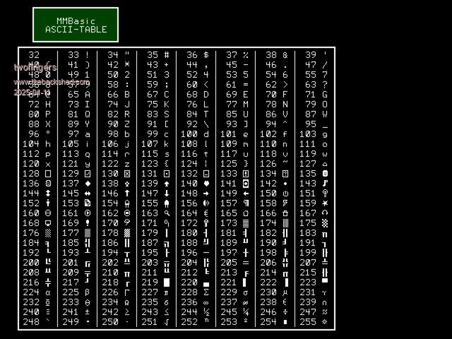 @Harm, thanks! Good to know. My RP2040s only have console. That also explains why Vadim implemented it that way. I'll change it. Kind regards Michael So, I changed the "mode 3"-line (LN: 148) to If Instr(1,DV$,"2350") Then If Instr(1,DV$,"VGA") Or Instr(1,DV$,"HDMI") Then MODE 3 EndIf I hope, this fixes the issue? fm115.2.zip Any comments or suggestions are welcome. Edited 2025-01-11 09:16 by twofingers causality ≠ correlation ≠ coincidence |