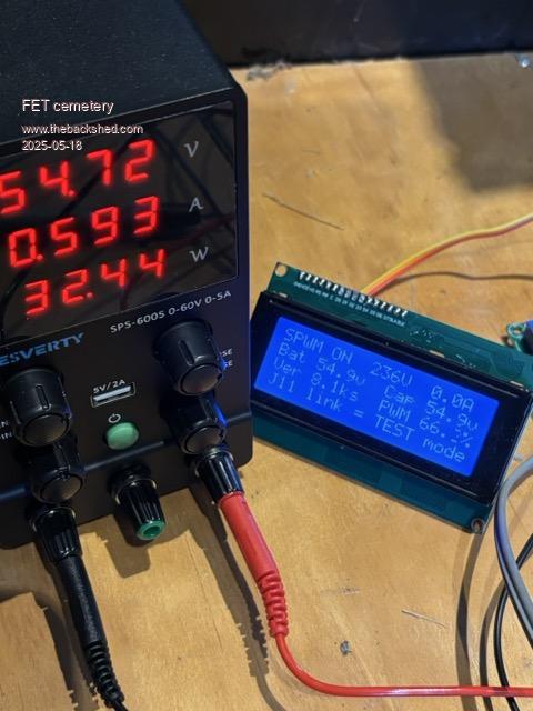 I'm not sure I follow you but suspect there is a misunderstanding. The controller board can be powered by a separate 12V supply J7 pin 1 = +12, J1 pin4 = 0V (or ground). Note: Put controller in test mode (J11 "T") With the 8 way ribbon as the only connection between the controller and the FET power board, the bias supplies get their 12V from the 8 way ribbon. but the controller is galvanically isolated from the Power PCB. With the variable voltage¤t supply connected to the power board B+ (T1) and B- (T2) there is no physical connection between the 12V for the controller and the variable V&I supply. So the Mosfets can power up a choke and toroid with SPWM with whatever voltage you set the variable supply to. The PWM will be at 99% but it wont distort and you can increase the voltage/current as required until the mains output is at say 250VAC, then plugging in the mains feedback to the controller J2, it should regulate to the output setting from RV1 on the controller board. If at first you dont succeed, I suggest you avoid sky diving.... Cheers Mike |