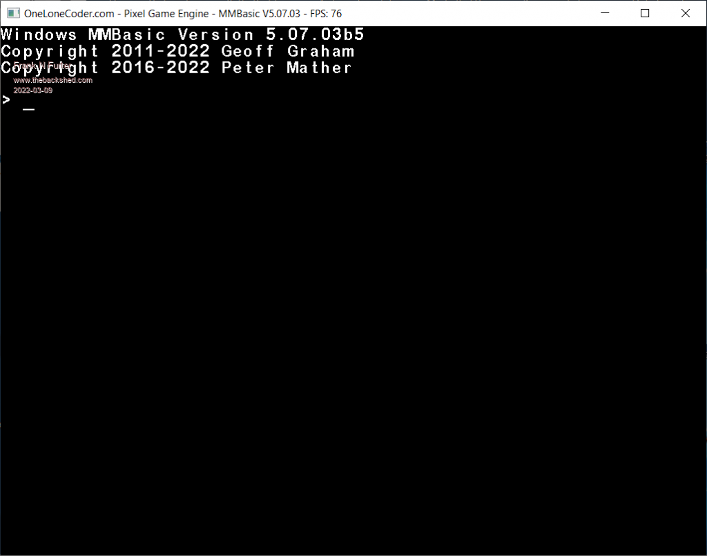 OK so we know it is the audio dll which is the problem - winmm.dll Now please try the attached but launch mmbasic from a dos box using the command MMBASIC 0 MMBasic.zip Tom: This should fix your issues including allowing a string variable for system except for getting rid of whitespace on the system command - what do you mean by whitespace? Edited 2022-03-09 22:37 by matherp |