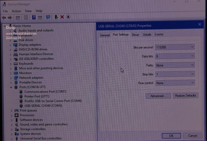 Hi Peter, Current Options. ![]() Device Manager. ![]() Tera Term Start up ![]() Tera Term Window. ![]() The Tera Term Window, stays completely blank if I try to use the PC keyboard to communicate with it. However I then plugged in a USB keyboard in and got the garbage shown, most keys do nothing, the retun key gave me the white squares, the up and down arrow keys gave me the $$$ and !!! etc. I have also tried a OPTION RESET, and get exactly the same again. Regards Kevin. |