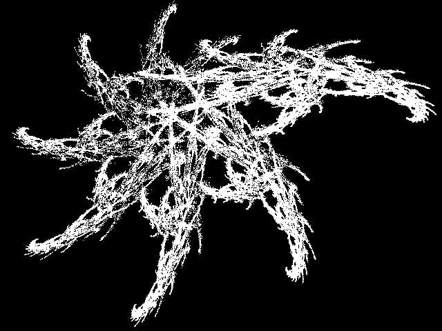 Evil Fractal ![]() CLS Do If Cint(Rnd) Then T=(X+Y)/2 Y=(Y-X)/1.333 X=T Else T=(X+Y+1)/2 Y=(Y-X+1)/4 X=T EndIf Pixel 240+X*350,170-Y*290 Loop While Inkey$="" |