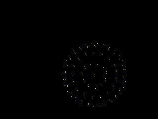 RotaSphere ![]() MODE 2 Dim Xa(255), Ya(255) x0=MM.HRES\2:y0=MM.VRES\2 Xdir=1:Ydir=1:C=Map(14) n=4 r=n*16 Do i=0 t=Timer tr=t-n*50 ra=tr/1234 rb=tr/2345 For a=0 To Pi Step .39268 For b=0 To Pi*2 Step .8-.6*Sin(a) o=Sin(a)*Cos(b) k=Sin(a)*Sin(b) e=Cos(a)*Cos(ra)+k*Sin(ra) Pixel Xa(i),Ya(i),0 Xa(i)=(o*Cos(rb)+e*Sin(rb))*r+x0 Ya(i)=(e*Cos(rb)-o*Sin(rb))*r+y0 Pixel Xa(i),Ya(i),C Inc i Next b Next a If x0<r Then Xdir=1:C=Map(Int(Rnd*16)) If y0<r Then Ydir=1:C=Map(Int(Rnd*16)) If x0>MM.HRES-r Then Xdir=-1:C=Map(Int(Rnd*16)) If y0>MM.VRES-r Then Ydir=-1:C=Map(Int(Rnd*16)) Inc x0,Xdir:Inc y0,Ydir Loop While Inkey$="" |