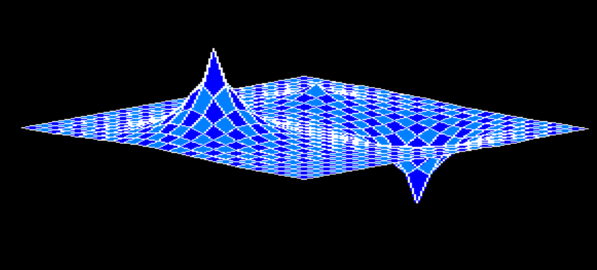 Looks even better in 1280x720 mode 3 (640x360) ![]() MODE 3 ' 640x360 Const SCREEN_HEIGHT = 360 Const Q = 3 Dim XP(Q), YP(Q), ZP(Q) As Integer Dim MX(26,26), MY(26,26) As Integer CLS ' Define charge points XP(1) = 11 : YP(1) = 6 : ZP(1) = 175 XP(2) = 17 : YP(2) = 18 : ZP(2) = -150 XP(3) = 7 : YP(3) = 19 : ZP(3) = 40 ' Projection constants Dim XS , YS As Integer XS = 25: YS = 200 ' Fill matrix with transformed coordinates For X = 0 To 25 For Y = 0 To 25 UPJE = 0 For W = 1 To Q D = Sqr((X - XP(W))^2 + (Y - YP(W))^2) Inc UPJE, ZP(W) * Exp(-D / 2) Next ' Fix grid orientation (X then Y) MX(X,Y) = XS + 11*X + 11*Y ' Flip Y-axis (to match PC-BASIC lower-left origin) MY(X,Y) = SCREEN_HEIGHT - (UPJE + YS - X*4 + Y*4) ' Optional: show control points Pixel MX(X,Y), MY(X,Y), RGB(0,255,255) Next Next ' Draw the surface E = 0 For Y = 25 To 1 Step -1 For X = 0 To 24 X1 = MX(X,Y): Y1 = MY(X,Y) X2 = MX(X+1,Y): Y2 = MY(X+1,Y) X3 = MX(X+1,Y-1): Y3 = MY(X+1,Y-1) X4 = MX(X,Y-1): Y4 = MY(X,Y-1) ' Fill with alternating pattern If (E Mod 2 = 0) Then K = RGB(0,0,255) Else K = RGB(0,128,255) EndIf Triangle X1, Y1, X2, Y2,X3, Y3 ,k,k Triangle X1, Y1, X4, Y4,X3, Y3 ,k,k XPc = (X1 + X3) YPc = (Y1 + Y3) ' Highlight border K = RGB(255,255,255) Line X1,Y1,X2,Y2,, K Line X2,Y2 ,X3,Y3,, K Line X3,Y3,X4,Y4,, K Line X4,Y4,X1,Y1,, K Inc E Next Next Save image "layer" |