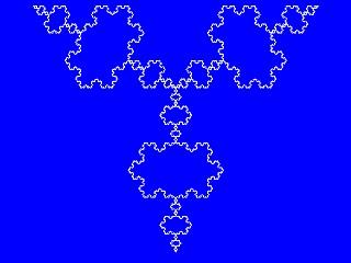 Drawing a fractal ![]() l=7 s=520 h=s*Sqr(3)/2 x=320-s/2:y=160-h/3 b=320+s/2:c=y d=320:e=160+h*2/3 CLS RGB(Blue) PROCF(x,y,b,c,l) PROCF(b,c,d,e,l) PROCF(d,e,x,y,l) End Sub PROCF(x,y,b,c,l) If l=0 Then PROCd(x,y,b,c) Else PROCsd(x,y,b,c,l) End Sub Sub PROCd(x,y,b,c) Line x,y,b,c End Sub Sub PROCsd(x,y,b,c,l) Local i,j,k,m,n,o,g,h,a a=Pi/3 g=(b-x)/3:h=(c-y)/3 i=x+g:j=y+h k=x+2*g:m=y+2*h n=i+(g*Cos(a)-h*Sin(a)) o=j+(g*Sin(a)+h*Cos(a)) PROCF(x,y,i,j,l-1) PROCF(i,j,n,o,l-1) PROCF(n,o,k,m,l-1) PROCF(k,m,b,c,l-1) End Sub |