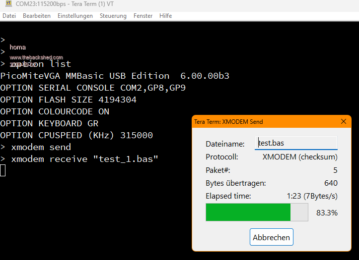 Definitely now works for me W11/Teraterm and didn't before I've re-coded XMODEM so is polls the UART rather than using interrupts. Still b3. Please ensure you are updating to the below which I have just loaded and verified PicoMiteHDMIUSB.zip |