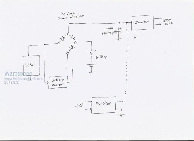 Quote  The 48 volts worth of solar panels, a 48v battery, and them connected to the load and isolated from each other via 48v rectifiers (is that what you were suggesting?) works for that very specific narrow purpose, but you would never use that design if the panels and grid offered 140V each as the power loss across the diode at that high power would be pretty wasteful, yes?