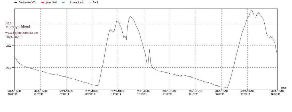 Below are the logs from yesterday and today's temperature from my solar heater. The logger was located at head height under the ceiling grille.