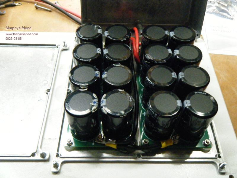 For the capacitors I re cycled 16 off 470uF/450V, giving me around 7500uF in total.