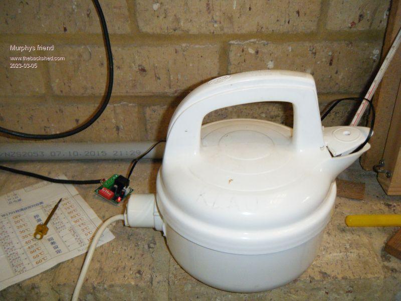 I inserted the NTC sensor of my 12V thermostat and a thermometer in the kettle's spout and turned the solar power on.