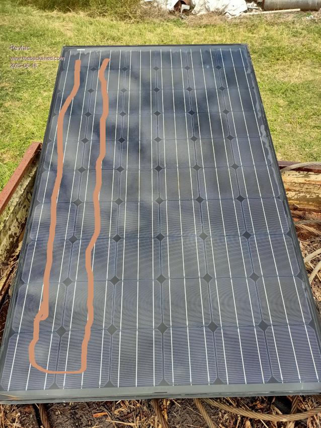 Ok then, check each section with a meter while in full sunlight and see if anything isn't right, diodes etc, testing each section under some load should be helpful, I have found a few faulty panels but they were all old, some look good when reading short circuit current but didn't put out any useful power at VMP, thought that was a bit strange, haven't got around to fixing yet. Just for an example using an old panel, 250w 60 cell open circuit voltage 38v, well it used to be.....not very sunny today so panel voltage is 35v total, this panel output will stop completely if any portion of it is shaded, and would be useless on its own, if it were in a string the rest of the panels should still work through the bypass diodes........I normally don't bother with any of this detail just connect a string of 3 for the MPPT charge controller and power on......lets go..... ![]() ![]() Now disconnecting one section (see line drawn on lower panel string) in the junction box and left the diode in place, the panel will now output 23.2v and the other section is 11.6, now we can shade the lower section and it has no affect on the rest of the panel, there is normally no reason to do this (just a demonstration) but I can use this to charge a 12v battery with an appropriate charge controller A little info on the diodes and how they are used..https://sinovoltaics.com/learning-center/off-grid/blocking-diode-bypass-diode-solar-panels/ you may have seen this already but if you haven't or it might be useful for someone else. ![]() Cheers Aaron Off The Grid |