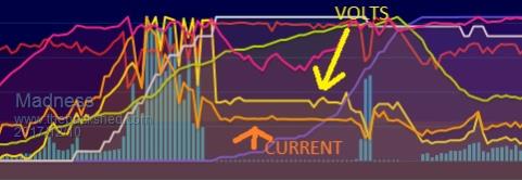 I had 5V of ripple on a 12V GTI system. It took 54,000uF on the input to clear it up. Not long ago I saw a youtube video where the guy was using a PWM motor speed control from his 48V battery to the GTI to limit output. He had some external caps connected to the GTI input with about six inches of wire. He commented those wires were getting warm. Duh, that source is too ridgid. I'll be trying throttling using PWM from a large array and will probably need a simple buck to lower ripple currents. For grins you ought to look at incoming voltage of panels only on a scope. It was way beyond what I estimated. |