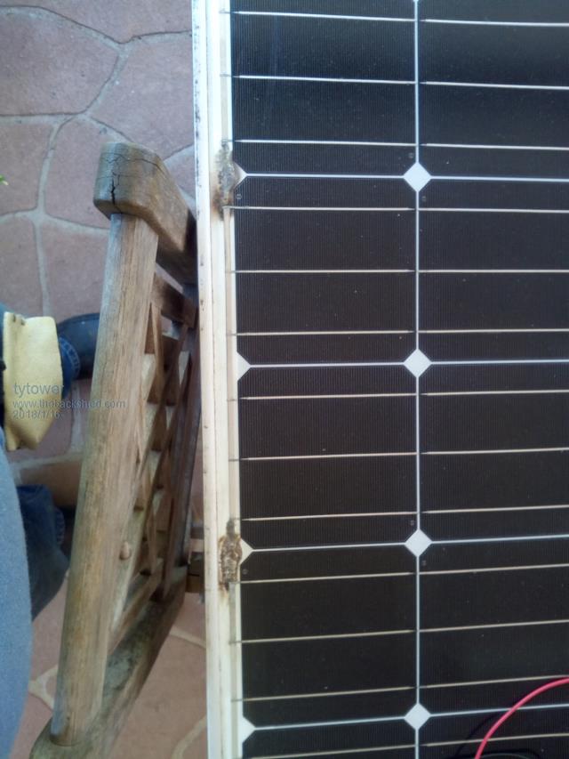 I have a 250 watt panel that is about 5 years old and I noticed it was only putting out 10 volts or so of a 30 volt expected . When I got it down the movement had fixed it and it works perfectly again now . I noticed however the corrosion builduo between the solder circuits that you see in the pictures . Does snyone know if this can be fixed ? Can i drill through the front ,drill off the corrosion and then seal up again with silicon? I am guessing this is caused by moisture getting in as this was the down portion of the panel Why do you make me turn my firewall off to uplioad files . No other sites I use do that . What are you hiding??? ![]() ![]() |