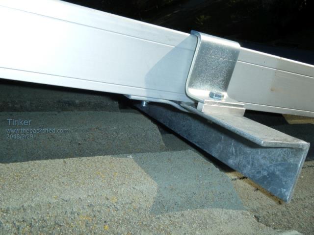 These catch in the up-roof facing lip of the galvanised angle iron rails.