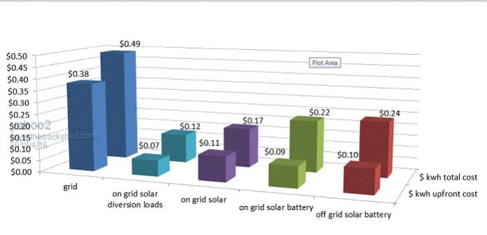 so if the benchmark is grid solar @ 17 cents then diverting power saves you 30% and storing power costs you 30% extra.