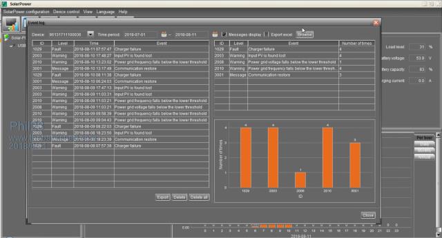 The Coms issues are nothing, that was me restarting the Laptop. You know the one that's probably only required 2 reboots in the past 9 months & is now having an occasional shutdown, just when you want the logging. I know a few more facts now. 1.- Temperature, wherever it's read from decreases before the error. 2.- If I touch nothing, charging will commence again after the batteries get below 53.0V. The Error 29 message won't clear from the LCD screen until I disconnect that Mains input. Phil. |