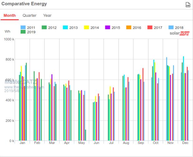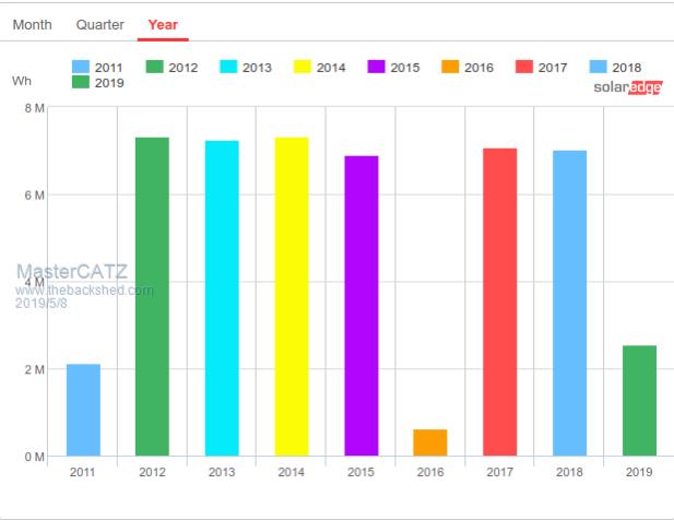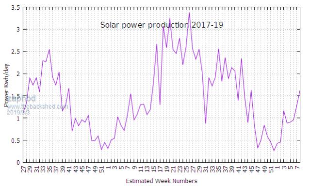 An update covering the last three years up till the end of last month from my tiny 1Kw array here in the dull UK! 52deg North. This is predominantly a water heating system but during 2018 a GTI was added (export inhibited) to use some of the surplus in the house, this improved the utilization in summer 2018 compared with 2017. There are several outages due to experimentation and uhum magic smoke emissions :)