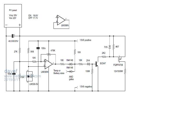 Quote  I tried to supply the LM358 directly from the PV input but couldn't get it to fire up cleanly so went to a constant 13V5 supply.