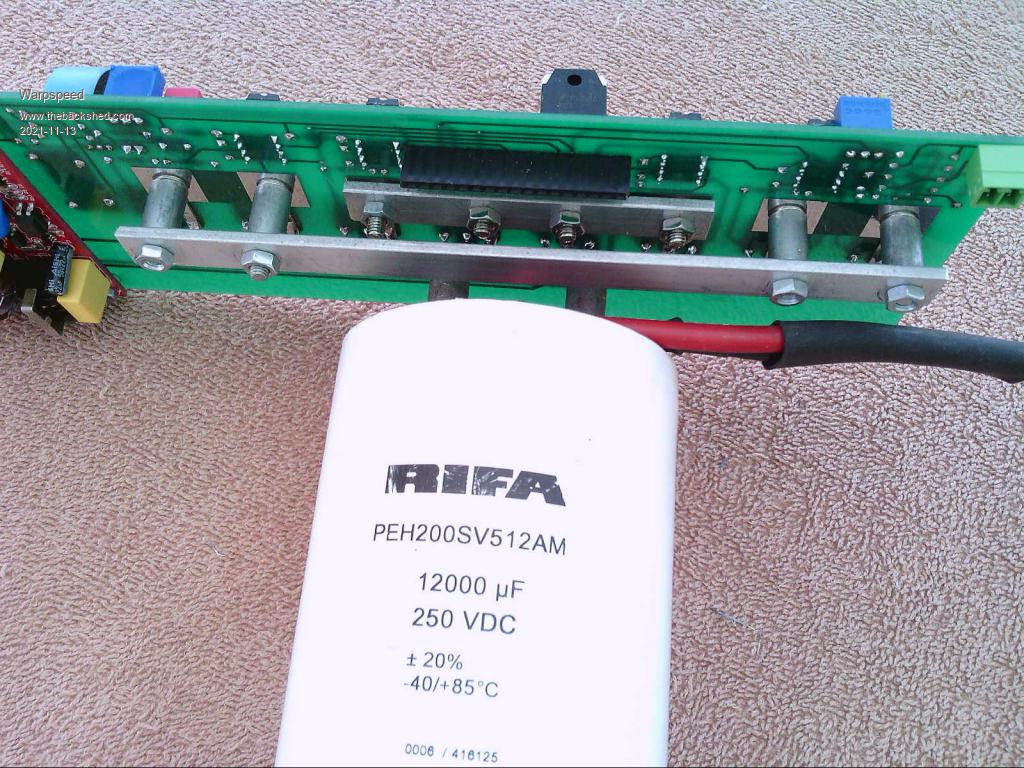 Have allowed more mosfets for higher currents if required, my current application only needs 2 x 3, leaving the other components off. The two heat sinks are used as current carrying bus bars with the mosfets bolted (no insulators), just have to sand the black anodizing off one surface first.