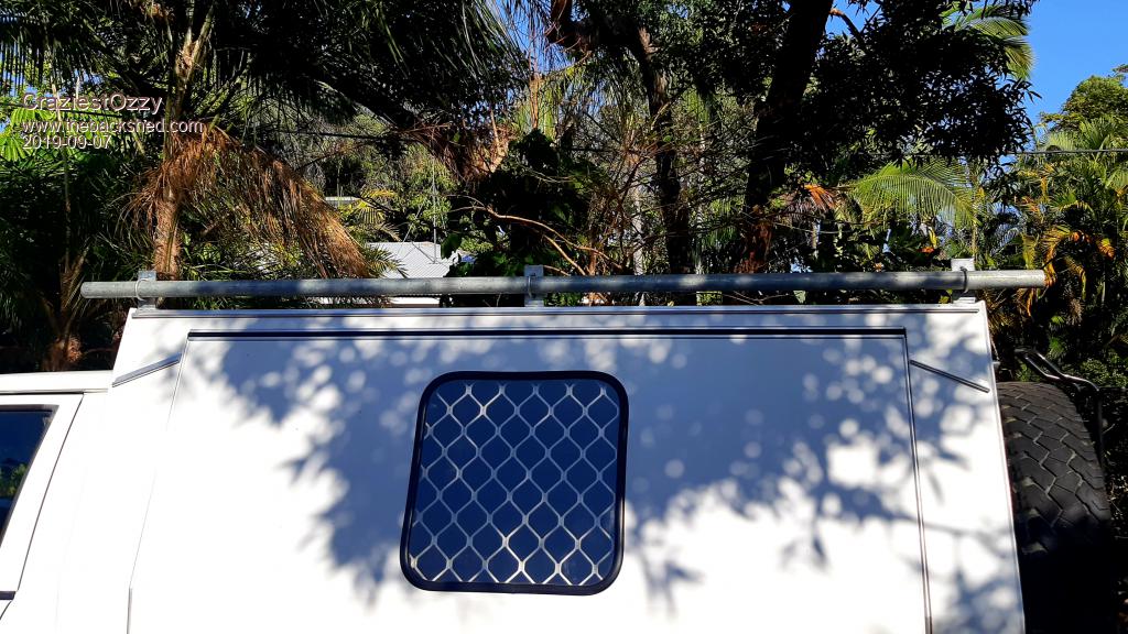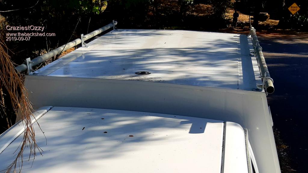 These days they just live in the back of the Hilux, as I simply don't trust the fiberglass canopy to take the strain, the steel roof on the exploder had visible deformation around the front support posts from windblast from semi's adnd until I get me welder out of the storage shed (typically- it's almost right at the back...) I cant weld up a frame for them
