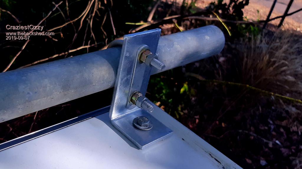 Six "L" brackets, holding 32mm x 2400mm lengths of galvanised steel tube