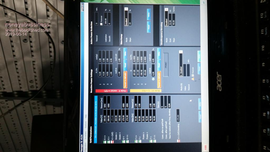 Not sure what most of the settings are ( didn't someone say don't touch ) but mins and maxs are there and one i personally like is time to reconnect to grid after fault.. mine is set to 5 secs, it does take a little bit longer but heaps quicker than 30 odd seconds  originally. ...
