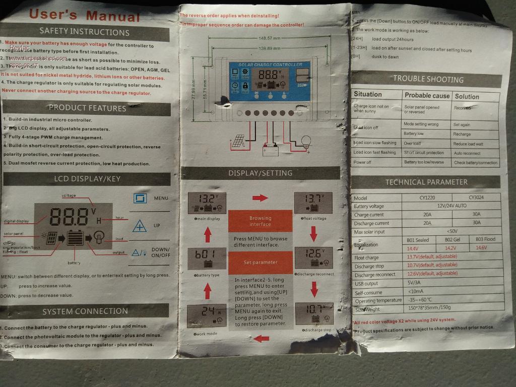 Thought I'd try on a system that only had a PV panel 20Voc and Imp 5A and connected it to a 45AH car battery.