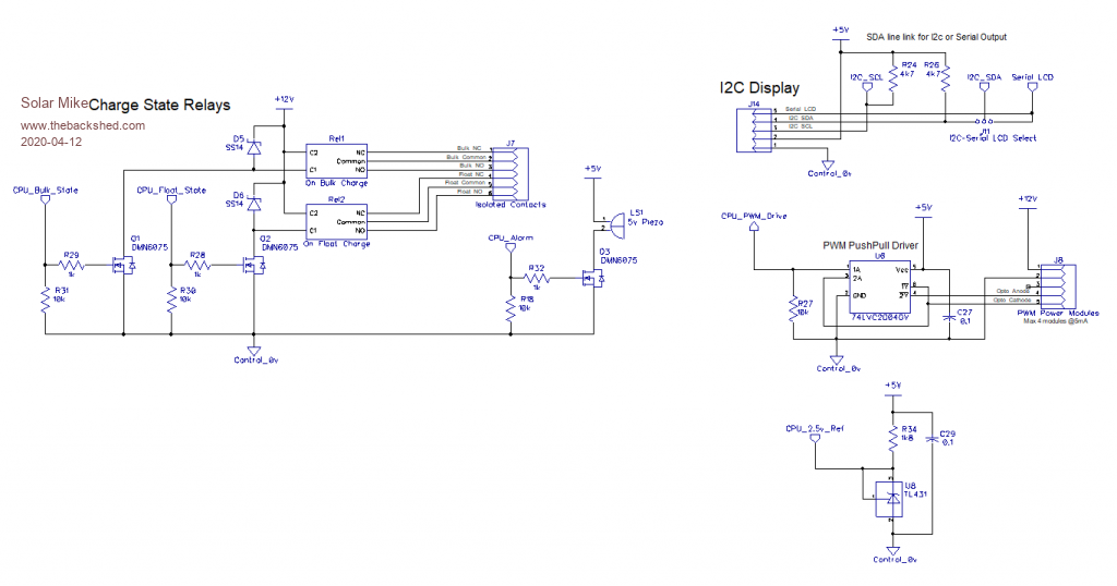Schematic and Gerbers, I have added a 2k 5w ceramic pre-charge resistor that can be wired to the battery via a switch, prior to closing of the main charger out breaker. There are no protections in this design to prevent very high voltage spikes being created should the output fuse or cct breaker trip when on full charge, no cpu could respond fast enough for this and shut everything down. Normally I use some sort of fast comparator dumping a 10 amp load across the output, giving the cpu time to respond. The purpose of this design is to directly compare with the PWM non - mppt charger, I want to switch between them and see if its worth the extra effort and cost. Gerbers_100v_Mppt_02_3.zip Schematic_100_02_03.pdf If anyone wants to build it, you can, I haven't developed any software yet, you could always attach an Arduino to the header pins and use some other CPU. Cheers Mike |