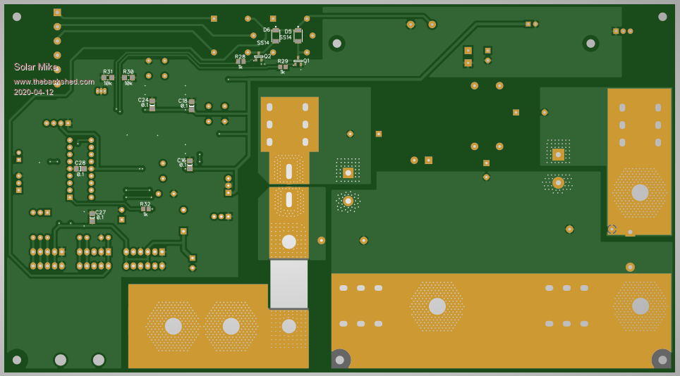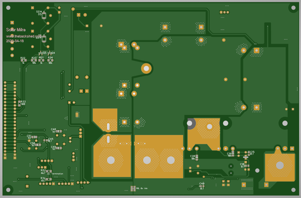Changes done. Gerbers_100v_Mppt_Generic_02.zip Will send these off tomorrow to JLCPBC. If anyone wants the schematic pdf send me a PM. Cheers Mike |