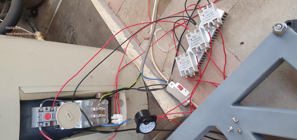 ![]() Had a spare heatsink so as temporary measure i have mounted 3 of these 40a cheap ebay SSR, I will look into mosfets Edited 2020-05-05 13:41 by rosspeel |