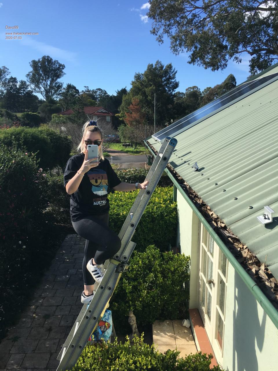 In the end I got up there a few times in an area where there was verandah so I couldn't fall off the roof to the ground and got a feel for it and thought about what I was going to do. I went up a number of times and quite enjoyed being up there and enjoying the view. Neighbour was getting quite amused watching me sit up there just Chilling.