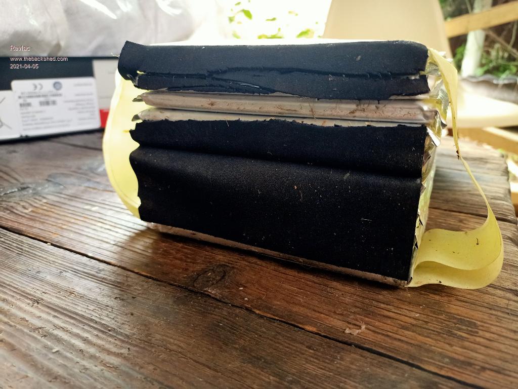 Now in the photo you can see the masking tape is really slack, what is most surprising is the cells (while charging and left for some time) have sucked back down flat most of the way, was expecting that.