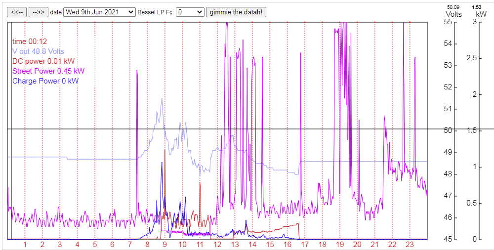 Total charge for Wednesday was 1.18kW.hr and probably the lowest on record for me.