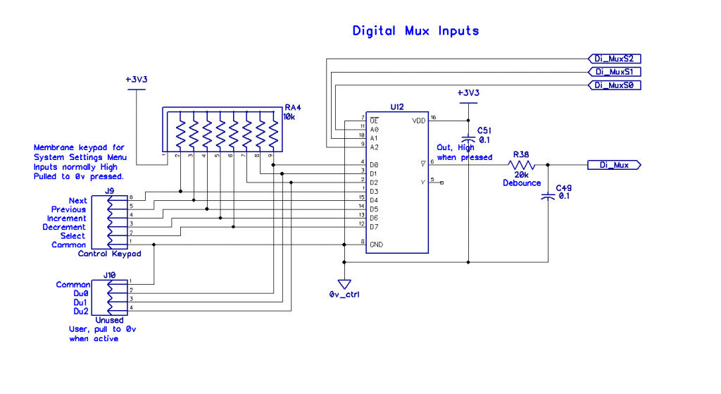 Have used a MC74HC251D digital mux as a port input expander, somewhat old style, but as I have lots lying around, will use them. Want to use a simple 5 pad key board for menu selection + a couple of spare inputs.