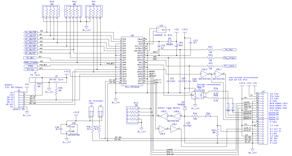 Quite like the PI Pico, its inexpensive, reasonably fast, easy to program in Python providing the 2nd CPU isn't used extensively, or even better using the upcoming Basic OS; So have decided to create a new PV controller using the Pico RP2040 module as an experiment.