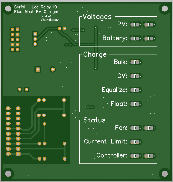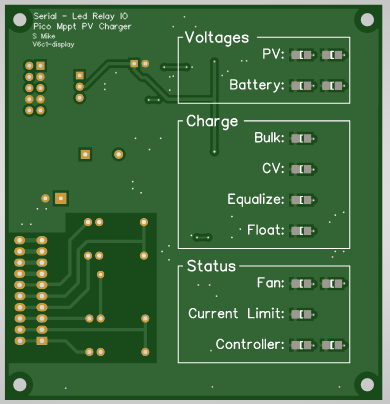 Its all down to the software how well the RP2040 will work here, either uPython or Basic; have brought out some uart, I2C, SPI IO. and comms connection for linking multiple controller boards; initially I will just use a serial latched led display for showing charge status, then use one of those inexpensive LCD SPI input displays.