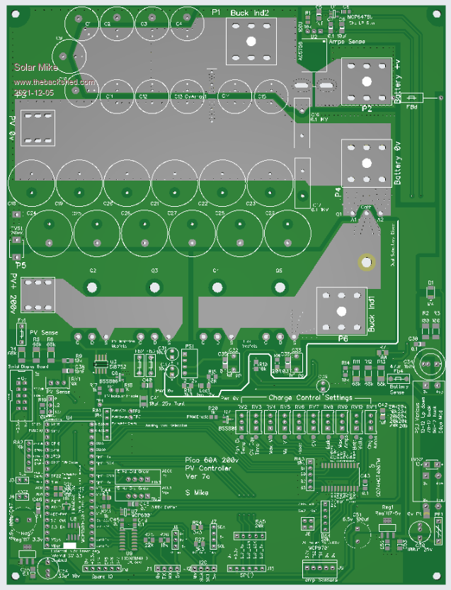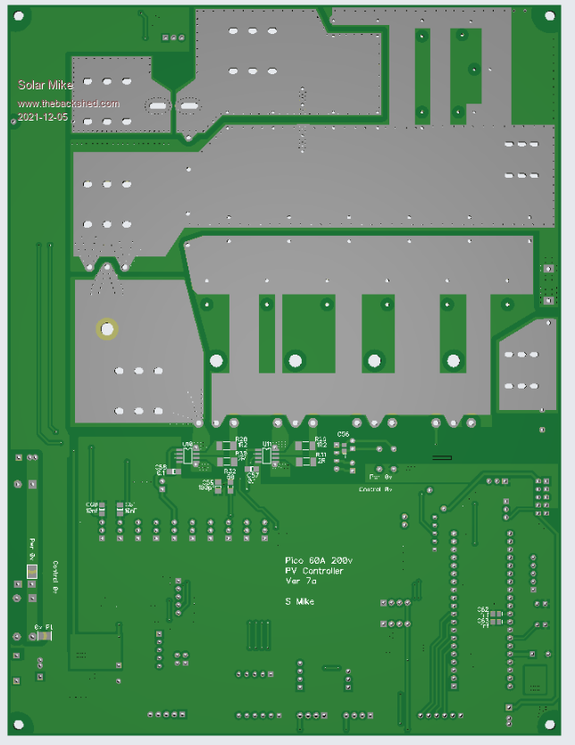 Having made quite a few of these PV controllers over the years, threw this pcb together making every attempt at good practice design, no schematic for it yet, will draw that up from the pcb and check it as I go.