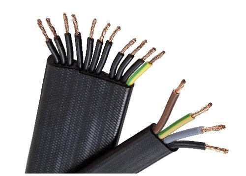 Anyhow the studio lighting system used lighting battens which could be raised and lowered by electric winches so that studio lighting could be added, remove, adjusted and so on. Some of these lights were 5Kw each, and there could be several of them on a single batten. Power cam down from the roof in flat multi cored cable with heavy rubber sheathing. This cable was like Z fold printer paper, it zig zagged down into a metal tray. Its standard common cable used to supply power to lifts, cranes and other equipment that must move over considerable distances.