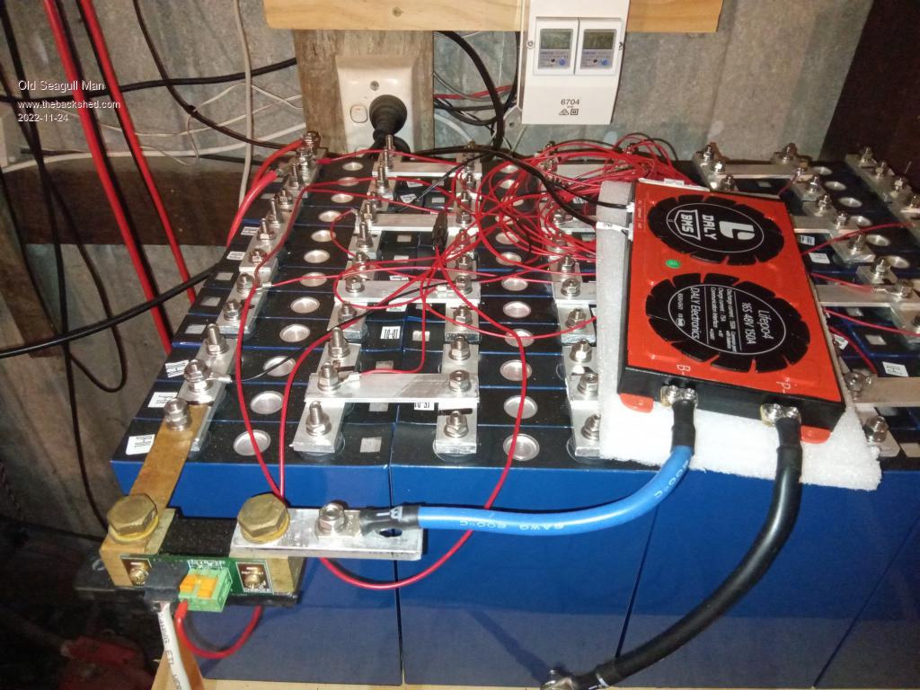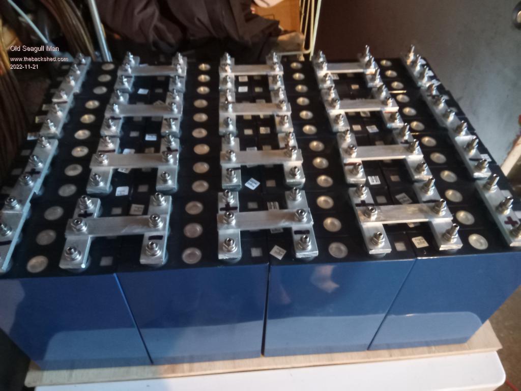 At he moment this battery and its brother or sister, are still testing, so they will not remain like this when they are put into service. I want to run at least 100 cycles on them before they go in the electrical cabinet. The proper looms, are almost complete