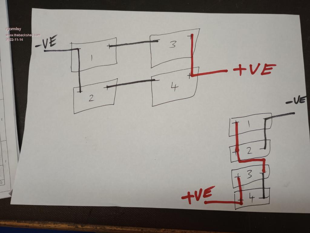 wired in series / parallel  (35mm square cable)  to make 24v