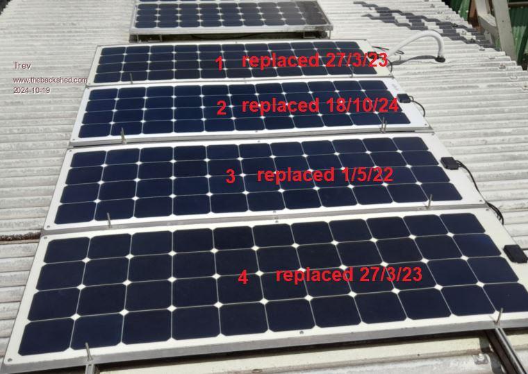 However, today I replaced 2 more panels (numbers 1 and 4) on the quad bike charge system. Both panels showed zero volts open circuit. So maybe 1 year and 11 months.