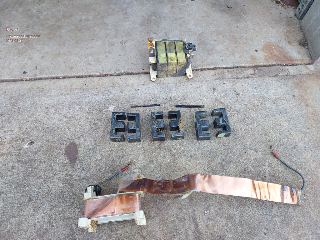 Here is a pic of the E-cores and the transformer and it does have spacers for separating the E-Cores.