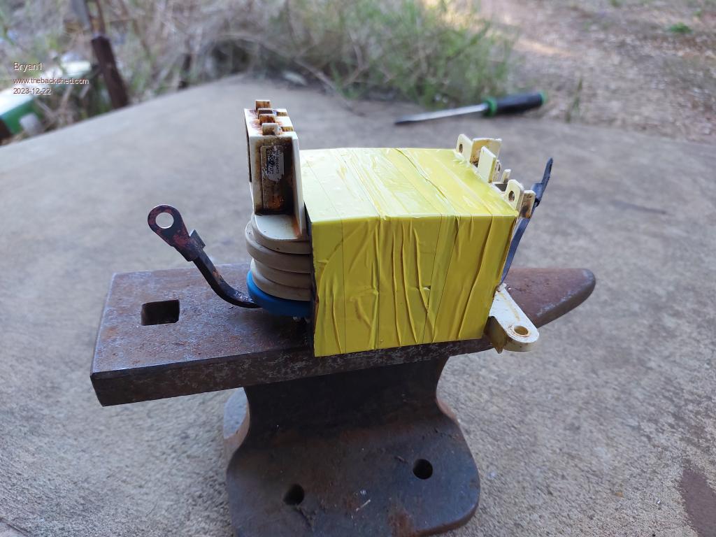Now to settle down the wire I used some 10 mm plexi glass and it did really help that this thick wire was fully annealed as I only had 3mm spare on the height to get the 2 layer thickness in so the E-cores would would fit. I did sort of work out 2.5 metres of wire and I only had 2.7 metres of heat shrink and when i got the 10 turns done I didn't need to trim the wire at all.