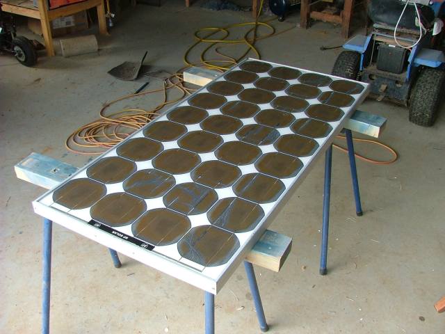 I bought a 2nd hand solar panel last year. Its a 70 watt BP panel for 12volt charging. The panel had not been mounted very well by the original owner, and this lead to cracking through several cells. Remember if you buy a solar panel to mount it on a very secure frame, as any flexing in the panel caused by wind will cause cracking in the cells.