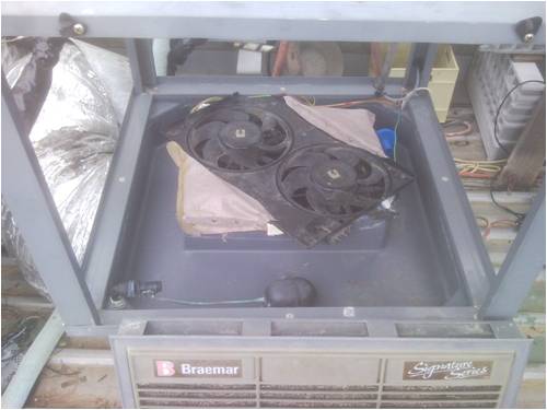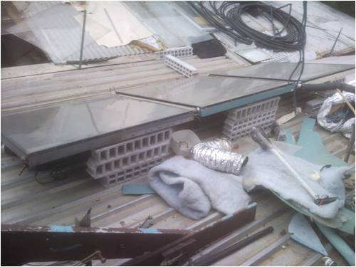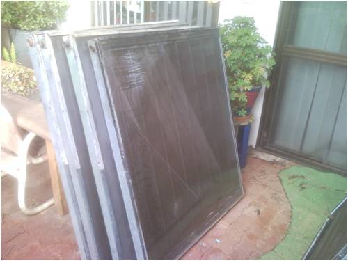 hi felow nerds , had some sucsess with this so pass it on for outhers to get idears using junk. i got few second hand soler water heating panels /coper type and put them lower than 2 x old big frij / frezzers i then sanderd the holes in them and silconed some glass over holes and cut a hi and lo in and outlet the door faces up so now they hold 660 leters of very hot water and copper pipe siliconed in the in out holes . 3 pannels at moment . the water is around 85 c and the plastic interiour has deformd a bit but still water tight . so it uses no power to store the hot water as pannels lower /convection. i then conected a 12 v pump and fan in serias so it can draw 10 watts or less on lo to pump the water into my house and into heat exchanger the english wall type /dosent need fan but better with then conected to a thermastat and wow works well heats a big room to 24 c no trouble on cold night . done ruff calculations on btu workes out about 13 kw of heat stored above ambiant if 90 c . tips insulate all pipes and face pannels more to winter position. as im totaly off gas gid with re so ,also converted a evapritive air con to 12 v using 2 car thermo fans and 12 v bilje pump. i can series them or parrelel threw relay and 2 stage thermstat it draws about 100w on lo and hi about 380 watts was bit ruf but reliable and works very well for removoing dandruff hahah and alot more equonamy than runiing threw inverter etc hope that helps some with idears that actaly work well yes im still working on the looks side hahah