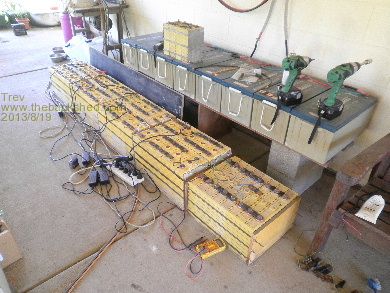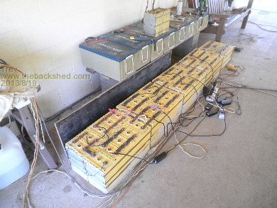 The lithium bateries that have run my EV Hilux http://www.thebackshed.com/forum/forum_posts.asp?TID=5991&PN =1 are now running my house, sheds, health clinic, and feeding the excess power to the grid. I think it is great having a good set of batteries that don't really owe me anything, but still giving good service. The old lead acid batteries are the ones I first started with in the EV Hilux. Originally started with 13 of them, but have sold a few over the years. Of these 8 left, one of them is no good now and another possibly no good, but the other 6 seem to be OK. They will all be taken to the scrap though. Trev @ drivebynature.com |