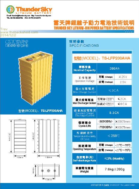 Well the smaller post uploaded, but the forum is back to giving me an error code again, even with smaller posts. I keep trying to post I sell a lot, but don't make much money on them, They cost a lot. A friend once said he was going to get them direct from the factory at a better prce, but by the time they landed in Australia it cost him $2.20 per Ah. This was at a time I was selling at $1.40 per Ah. It was a good US AU exchange rate back then. You have to be ordering big volume to be economical. Trev @ drivebynature.com |