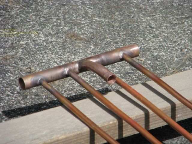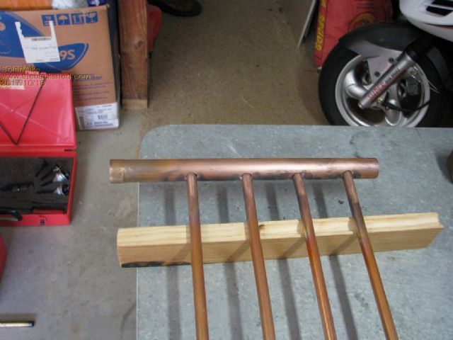 The copper tubes are welded, the thin 0.25mm foil is soldered to the tubes, bit like making a solar hot water heating panel, same as how I built the ones on the roof.