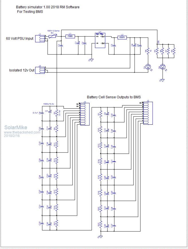 With the 50V house Lifepo4 bank in the garage bolted in a rack against a concrete wall and floor, makes it difficuilt for testing various BMS options, so have built a battery cell emulator for playing around with BMS design on my work bench.