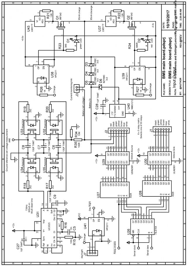 The above schematic was what I started out with when using relay switching and the central software driven cell balancer. The floating cell balancer part will be removed from the final circuit board.Edited by Warpspeed 2017-11-09